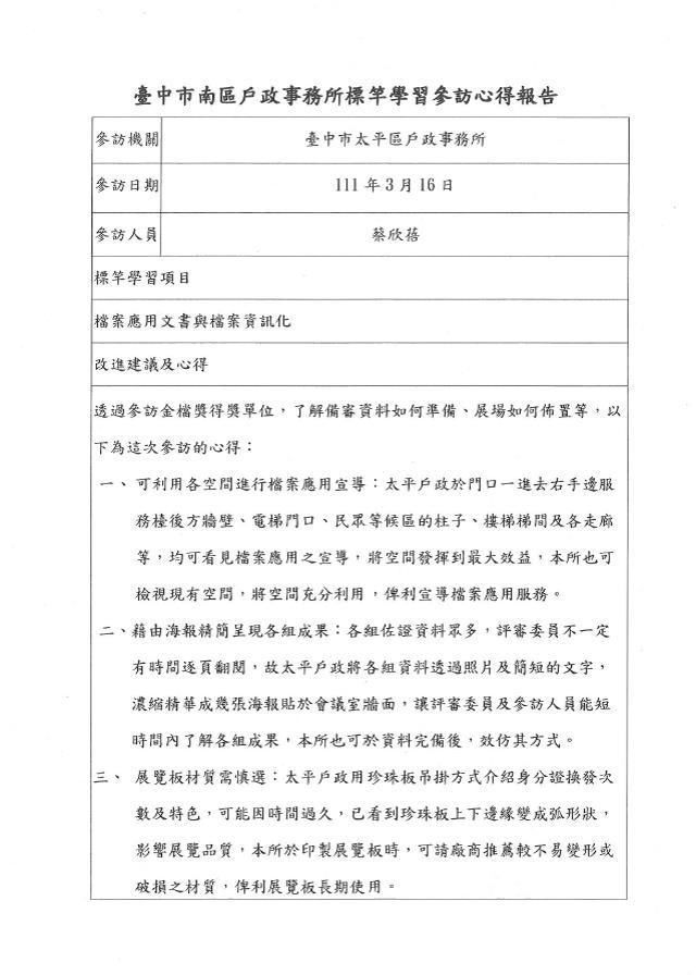 111年3月16日臺中市太平區戶政事務所標竿學習