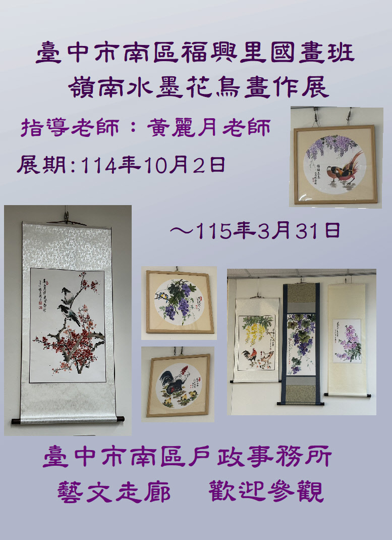 展期:114年10月2日到115年3月31日 從無到有的奇妙體驗,從忙碌緊湊的現實生活反差跳脫,達到〝鬧中取靜〞的精神享受,是參展學員的最大收獲,本次展出以小品為主,以簡單的筆觸勾勒出不同色彩與花鳥形態,呈現出躍然紙上的無比自在,冀與識者共享。