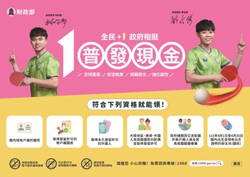 相關發放資訊請參閱「全民+1 政府相挺」普發現金官網及海報。