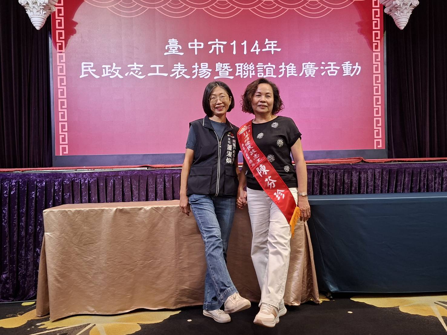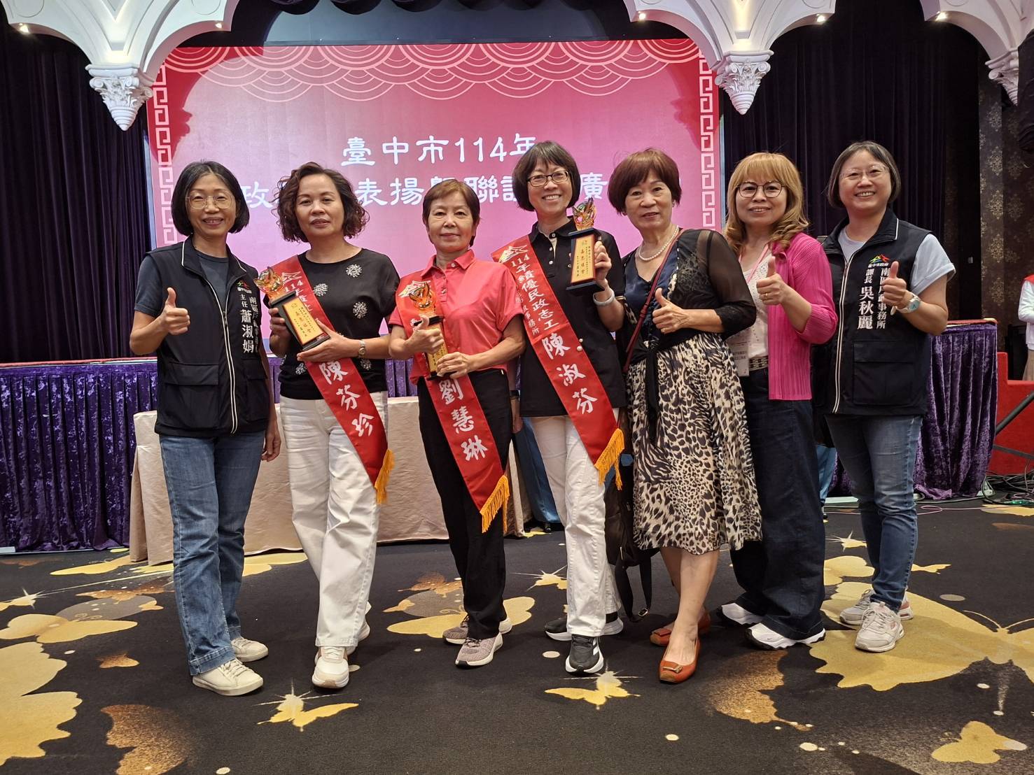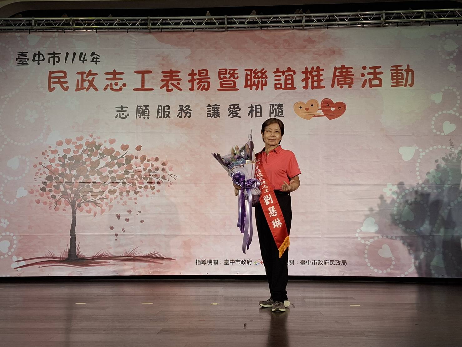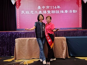 114年民政志工表揚活動~志願服務 讓愛相隨 臺中市政府民政局於114年10月31日上午舉辦民政志工表揚活動,恭喜本所志工陳芬珍、劉慧琳及陳淑芬獲得績優民政志工的殊榮並接受局長吳世瑋表揚,肯定志工們的付出及貢獻。 本所主任蕭淑娟由衷感謝每位志工夥伴平日的辛勞,因為您們無私奉獻,讓南區戶政的服務更優質更貼心,謝謝您們。